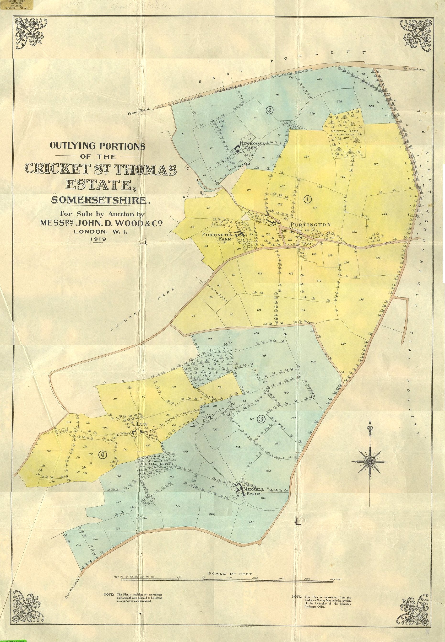 Map of Sale of Outlying Portions of the Cricket St Thomas Estate 1919