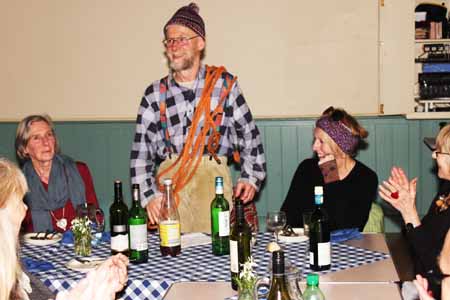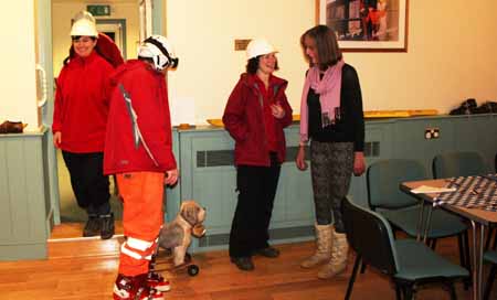 ![]() Let it snow! Let it Snow! Let it Snow! We may only have won a single Gold Medal at Sochi, but that did not deter Winsham's snow sports enthusiasts turning up for a good night out at the Jubilee Hall on Saturday night, 22nd February. The Hall was transformed into Après-Ski Cafe for the evening. The food was fantastic, the music controversial! The new projector was used to provide a background of Alpine scenery (pictures provided by Hannah Jacobsen). The evening also had drama, as the Winsham Mountain Rescue team entered the hall with a badly injured resident, retrieved from the dangerous rocks surrounding Court Farm Close. A St. Bernard dog also played a part in the rescue. The victim recovered well, and was later seen tucking into her dinner! All's well that ends well